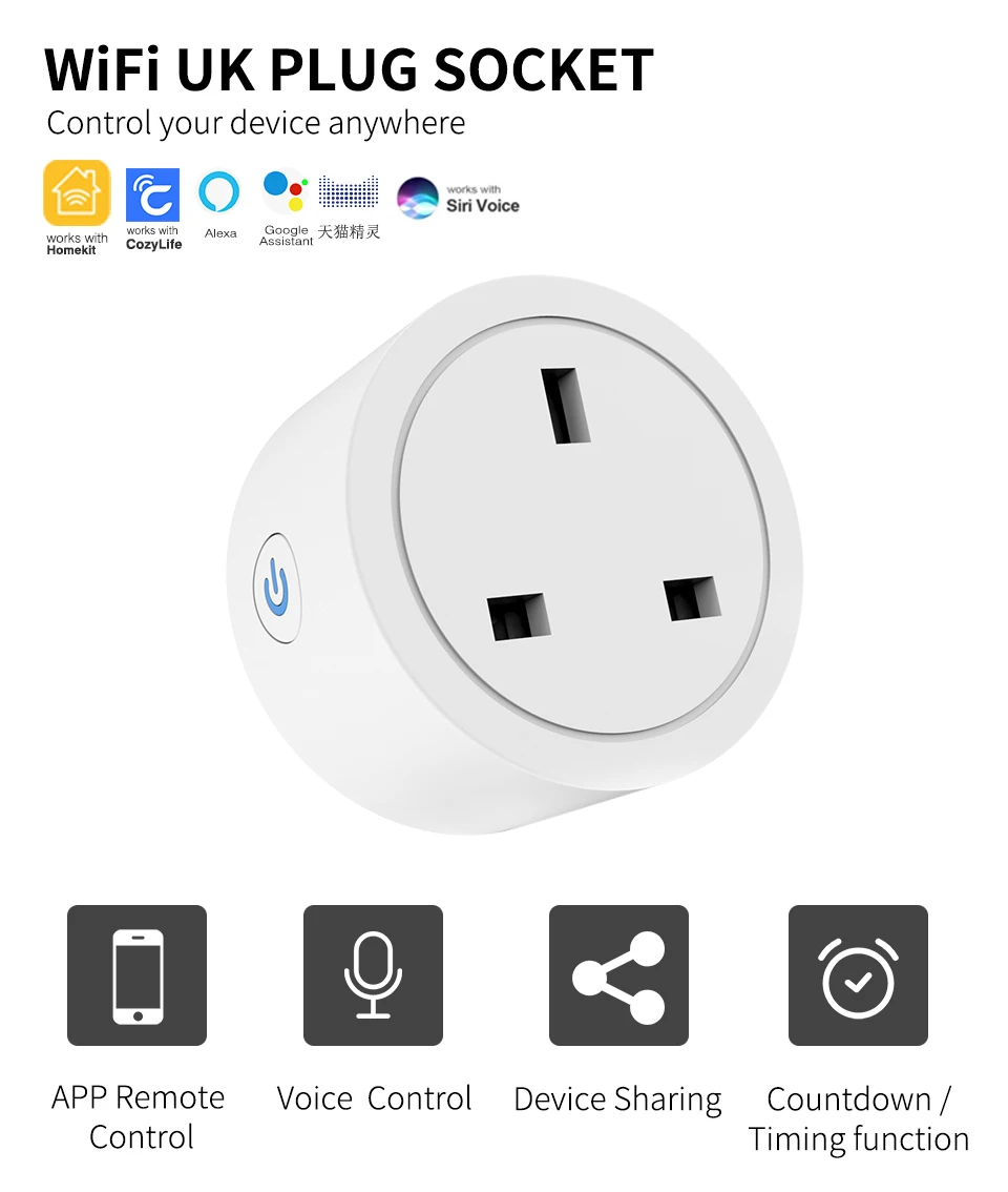 Tired of high electricity bills? This heavy-duty 20A Smart Plug allows you to monitor exactly how much power your fridge or heater consumes. Control your home from anywhere via the Smart Life App. No Hub Required. Capacity: 20A (Supports heavy appliances) Plug Type: UK Standard (3-pin) Features: Real-time Energy Tracking, Voice Control, Overload Protection.